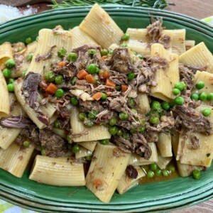 It’s then shredded and tossed with peas, pecorino cheese and your favorite pasta for a different kind of Italian meat sauce. Read on for more!